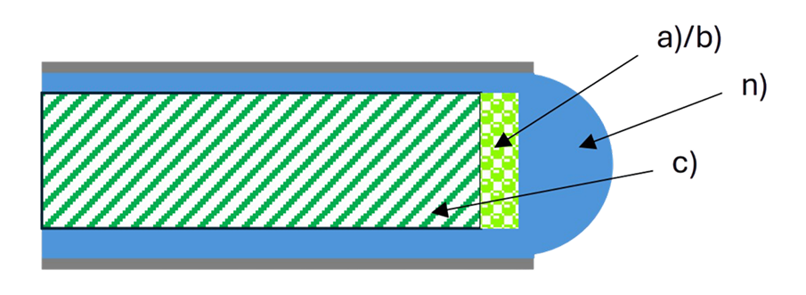 A special paint a) is reflecting the sun (or artificial) light. The brighter the surrounding light collected by the special glass domed PLP capsule n), the